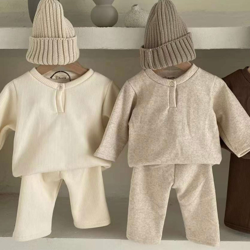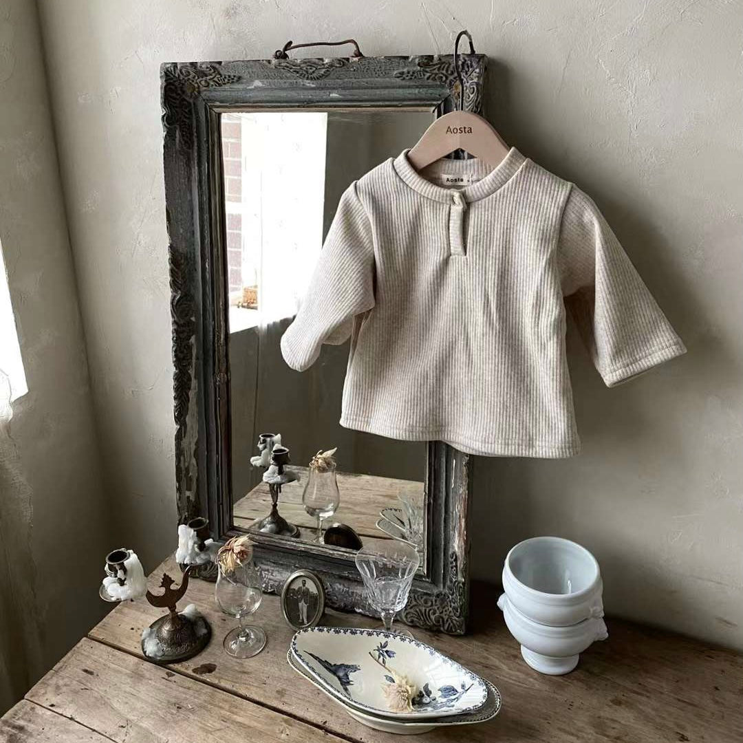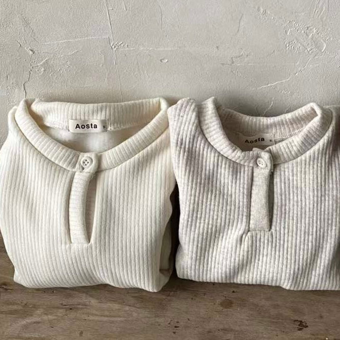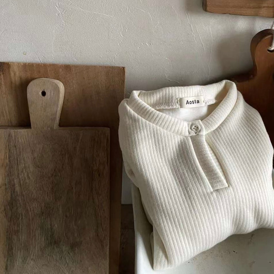 Super soft and comfy egg tee with good elasticity and ribbed texture for little boys. Buttons on the neckline make it easy to put on and take off. Perfect for layering or wearing on its own for a casual look in colder weather.